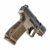 Wyróżnikiem tego modelu jest lufa o długości 81 mm, zapewniająca optymalną równowagę pomiędzy precyzją a kompaktowym rozmiarem. Polimerowy szkielet pokryty odporną na korozję powłoką Cerakote chroni broń przed trudnymi warunkami atmosferycznymi, gwarantując trwałość i niezawodność przez długi czas. Pistolet został również wyposażony w zaawansowany mechanizm spustowy o szybkim i krótkim resecie, co pozwala na dynamiczne i precyzyjne strzelanie.