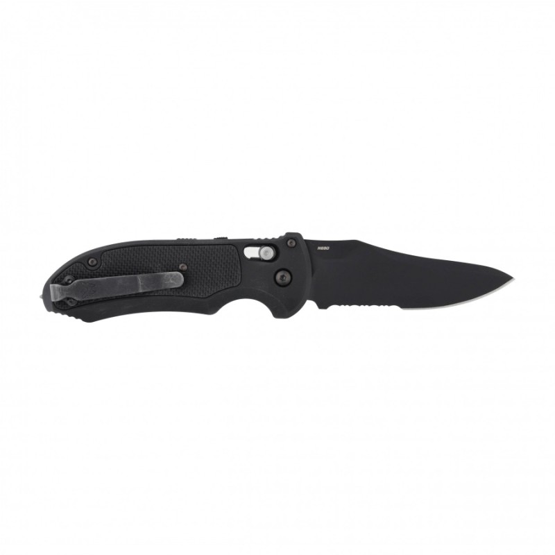 Benchmade 9170SBK Auto Triage to duży nóż taktyczny z dwoma automatycznie rozkładanymi ostrzami, zaprojektowany z myślą o służbach mundurowych i ratownictwie. Wersja z ostrzem częściowo ząbkowanym.