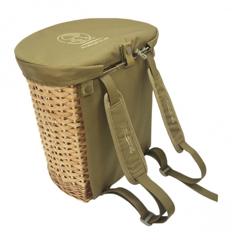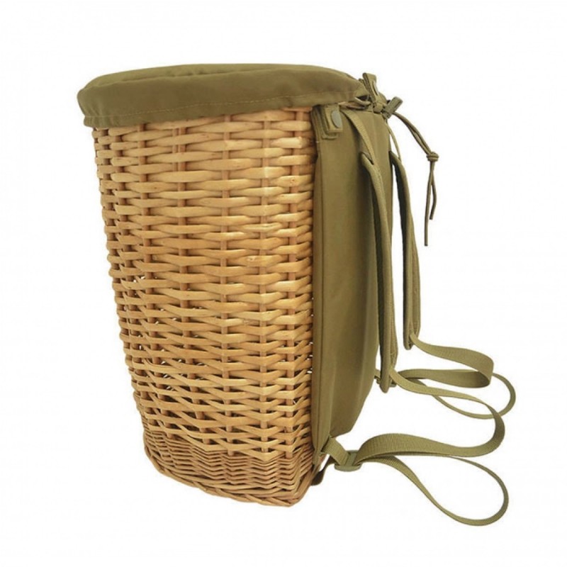 Plecak wiklinowy ACROPOLIS RNG-5M 13 litrów to wygodny kosz transportowy, służący do przenoszenia zbioru grzybów w trakcie grzybobrania. Ma on pojemność 13 litrów i korpus wykonany ze splotu wikliny połączonej z miękką pianką poliestrową zapobiegającą uciskowi na plecy. Od góry wyposażony jest w pokrowiec z przykrywką, zabezpieczający zawartość przed wysypaniem. Dodatkowo wyposażono go w regulowane na długość szelki. Model jest w kolorze oliwkowym.