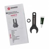 Zawrtość zestawu: kompensator płomienia Gomander Quadron Evo 5,56 mm 1/2-28 UNEF, podkładka sprężynująca, nakrętka zabezpieczająca gwint, smar ceramiczny, kluczyk montażowy.