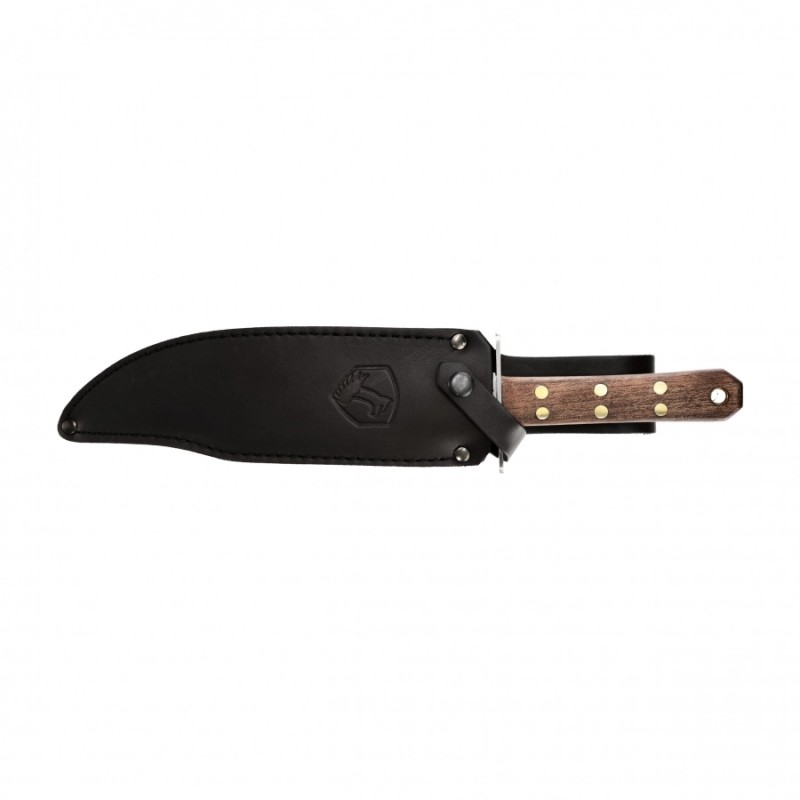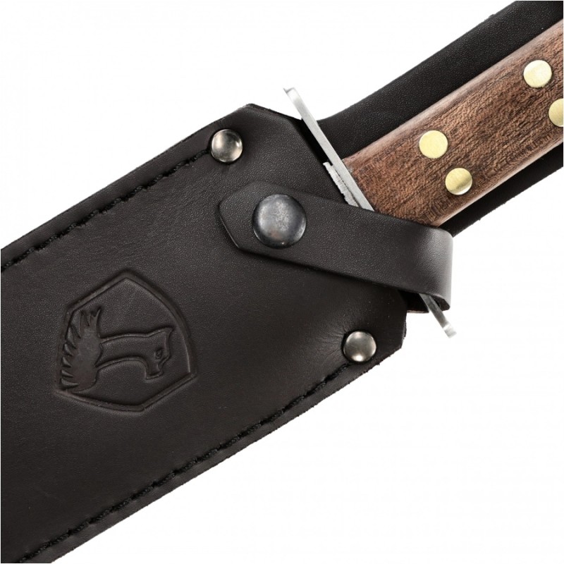 Prostą rękojeść wykonano z drewna orzechowego, mocowanego za pomocą świetnie wyglądających podwójnych mosiężnych kołków. Rękojeść doskonale leży w dłoni, jest wytrzymała oraz odporna na wilgoć.