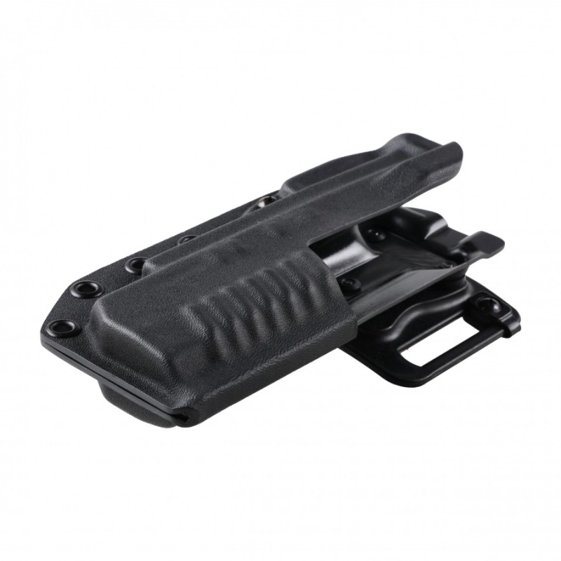 Kompatybilna z szeroką gamą pasów taktycznych i pasów strzeleckich – kabura pewnie utrzymuje się na miejscu nawet przy intensywnym ruchu.