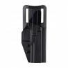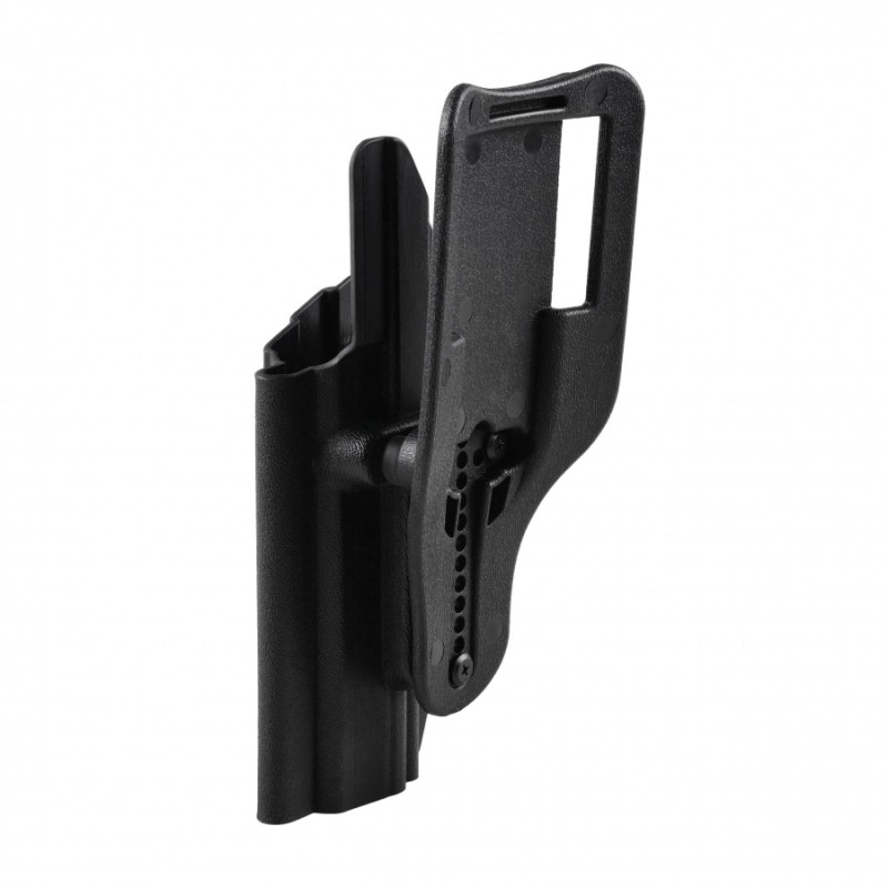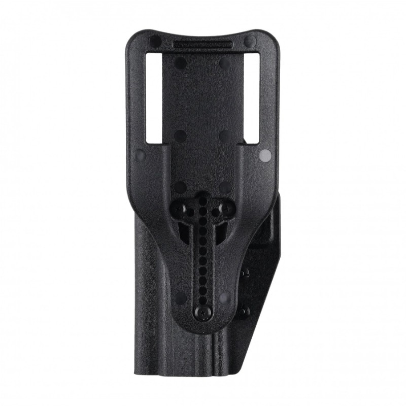 Kabura montowana jest na przelotowej, obniżonej platformie Mid-Ride, która umożliwia łatwe mocowanie na pasie taktycznym o szerokości do 45 mm. Obniżenie i przesunięcie broni na bok pozwala na pewne i bezpieczne dobycie, a jednocześnie zapewnia, że pistolet nie koliduje z kamizelką, nawet podczas dynamicznego ruchu.
