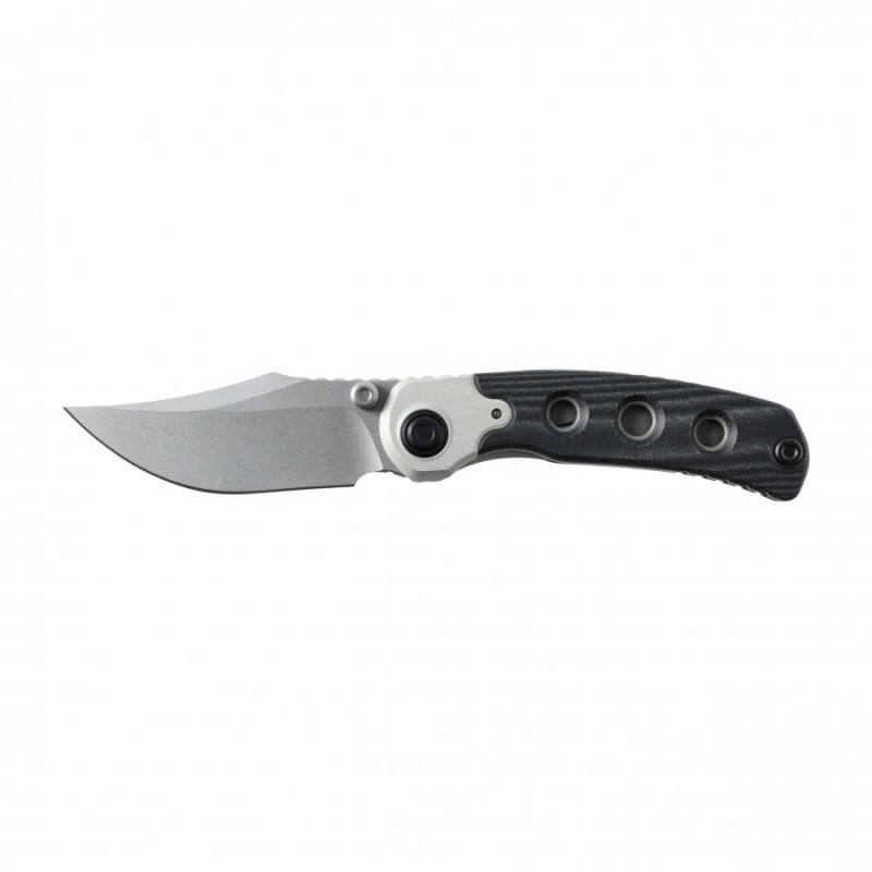 Aluminiowy bolster w połączeniu z okładzinami z Micarty tworzy rękojeść, która jest lekka, a zarazem niezawodnie pewna w dłoni. Naturalna faktura Micarty poprawia chwyt, zwłaszcza w warunkach wilgotnych, a wyprofilowanie zapewnia komfort nawet przy długotrwałym użytkowaniu. Dzięki wyważeniu na osi głównej nóż doskonale układa się w dłoni niezależnie od stylu chwytu.