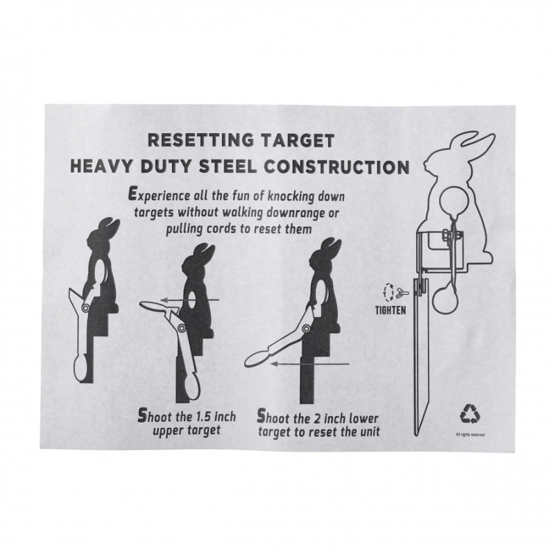 Cel RazorGun wykonano z grubej blachy stalowej, co zapewnia trwałość i odporność na uszkodzenia. Cel reaktywny wyposażono także w prosty mechanizm resetujący, dzięki czemu po trafieniu w dodatkowy dolny krążek, możemy zdalnie „postawić cel”. Taka funkcjonalność powoduje, że po każdym celnym trafieniu nie musimy pochodzić do celu, aby go przygotować do ponownego strzelania.