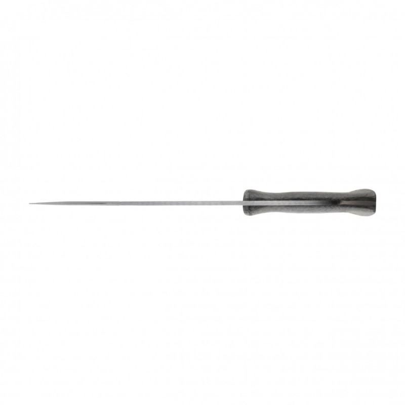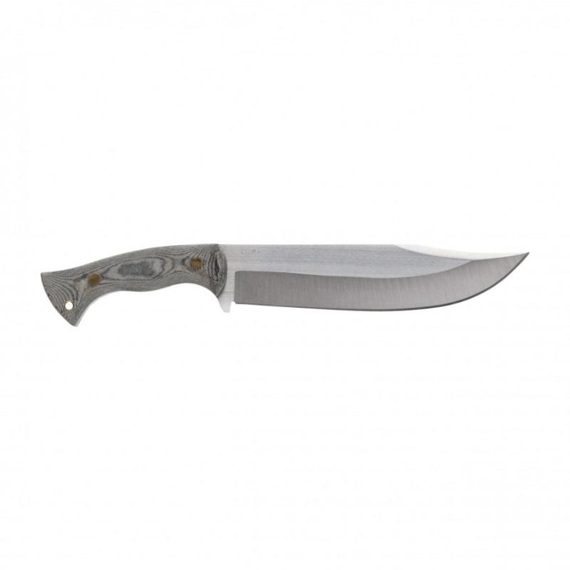 Anatomicznie ukształtowaną rękojeść wykonano z czarnej mikarty, czyli z juty prasowanej pod ciśnieniem z żywicą syntetyczną. Dzięki temu rękojeść doskonale leży w dłoni, jest wytrzymała oraz odporna na wilgoć. Mosiężne nity trzymają całość razem.