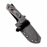 Wykonana z kydexu i naturalnej skóry pochwa pozwala na przenoszenie noża zarówno w pozycji pionowej, jak i poziomej.