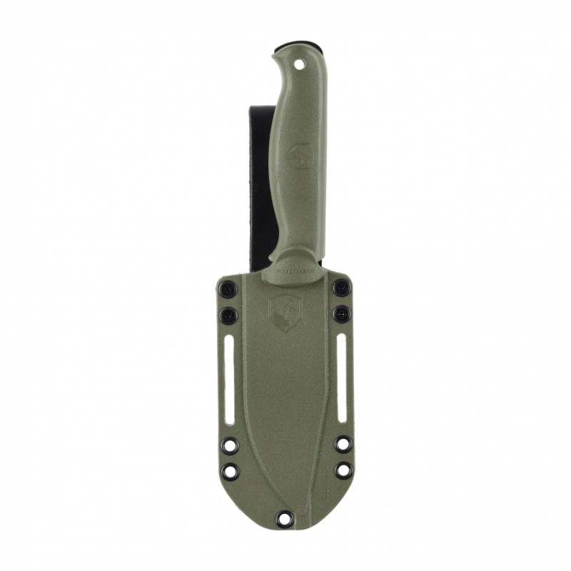 Nóż ma wygodną, antypoślizgową rękojeść z termoplastycznego polipropylenu. Jest ona odporna na niekorzystne czynniki atmosferyczne oraz intensywne użytkowanie. Ergonomiczny kształt zapewnia komfortowy chwyt, nawet w trudnych warunkach terenowych oraz zapobiega zsunięciu się dłoni na ostrze. Na końcu rękojeści znajduje się przelotka na smycz bądź linkę.