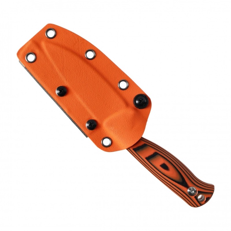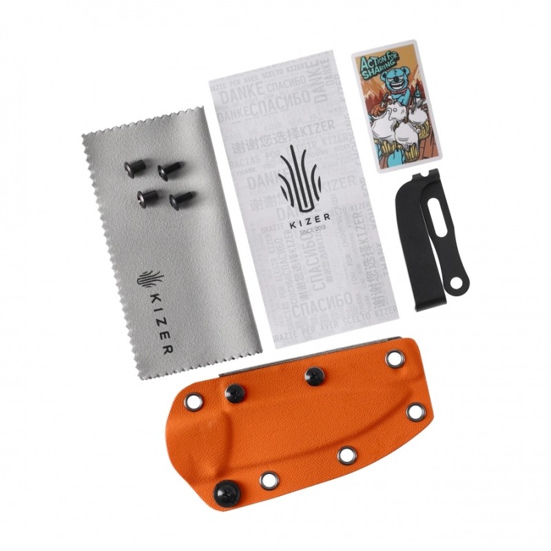 Wizualny kontrast i funkcjonalność łączy dwukolorowa rękojeść z tworzywa G10 w odcieniach pomarańczowym i zielonym, oferująca pewny, antypoślizgowy chwyt nawet w deszczu i błocie. Nóż waży zaledwie 76 g, co sprawia, że nigdy nie obciąży Twojego ekwipunku, ale zawsze będzie tam, gdzie go potrzebujesz – gotowy do działania podczas bushcraftu, trekkingu czy codziennego EDC. Kizer Evenki to funkcjonalna esencja outdooru – lekka, precyzyjna i gotowa na więcej.