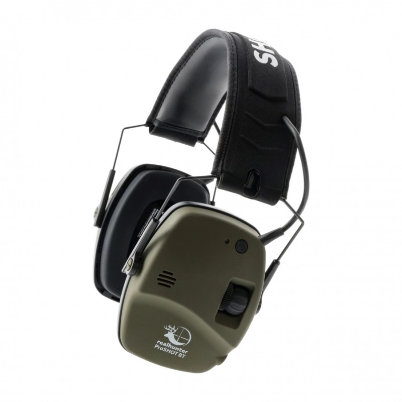 RealHunter Active ProSHOT BT oliwkowe to nowa generacja aktywnych ochronników słuchu o wartości tłumienia SNR 27 dB, w których zastosowano moduł Bluetooth oraz port minijack 3,5 mm pozwalające na prowadzenie rozmów telefonicznych, słuchanie muzyki oraz podłączanie dodatkowych urządzeń.