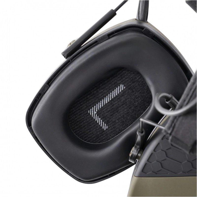 Po przekroczeniu bezpiecznego poziomu 82 dB aktywny układ elektroniczny automatycznie wyłącza mikrofony w czasie zaledwie 0,01 s! Po wyłączeniu mikrofonów ochronniki zapewniają pasywną ochronę 22 dB NRR. Wskaźnik redukcji hałasu (NRR) określa, o ile decybeli ochronniki zmniejszają niebezpieczny dźwięk. Ochronniki skutecznie chronią przed hałasem impulsowym, zapewniając jednocześnie czyste i wyraźne słyszenie dźwięków otoczenia.