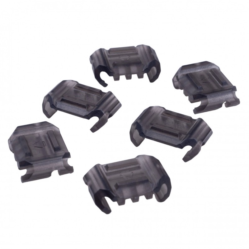 Cechy zestawu osłon Strike Industries PolyFlex:Wykonane z wytrzymałego i lekkiego polimeru SI PolyFlex, osłony cechują się elastycznością, umożliwiając swobodne dopasowanie do szyny. Zapewniają możliwość prowadzenia kabli w różnych kierunkach, włączając w to warianty wszerz, wzdłuż, pod kątem 180° oraz w kształcie litery Z.