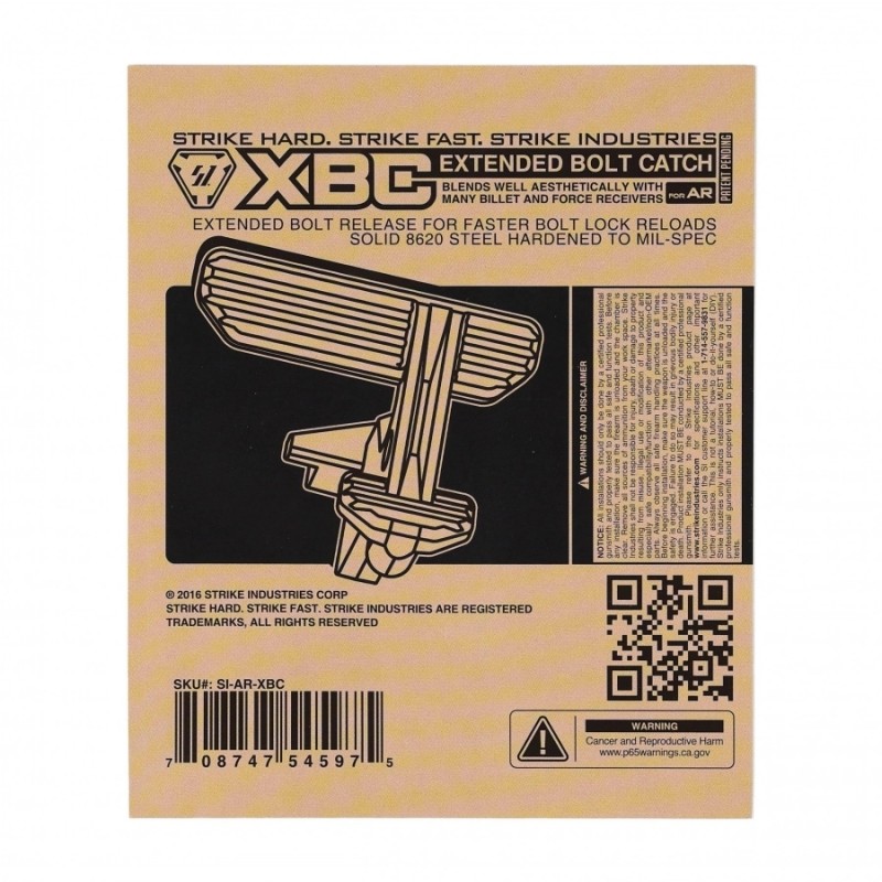 Strike Industries Extended Bolt Catch to powiększona i poszerzona dźwignia zatrzasku zamka wykonana w całości z jednego kawałka stali. Jest kompatybilna ze wszystkimi karabinkami w standardzie AR-15/M16 i umożliwia przyspieszenie procesu ponownego załadowania broni. Dźwignia ta będzie doskonałym wyborem dla strzelców sportowych oraz użytkowników wykorzystujących broń do celów taktycznych. Element jest odporny na zwiększoną siłę nacisku oraz intensywne użytkowanie.