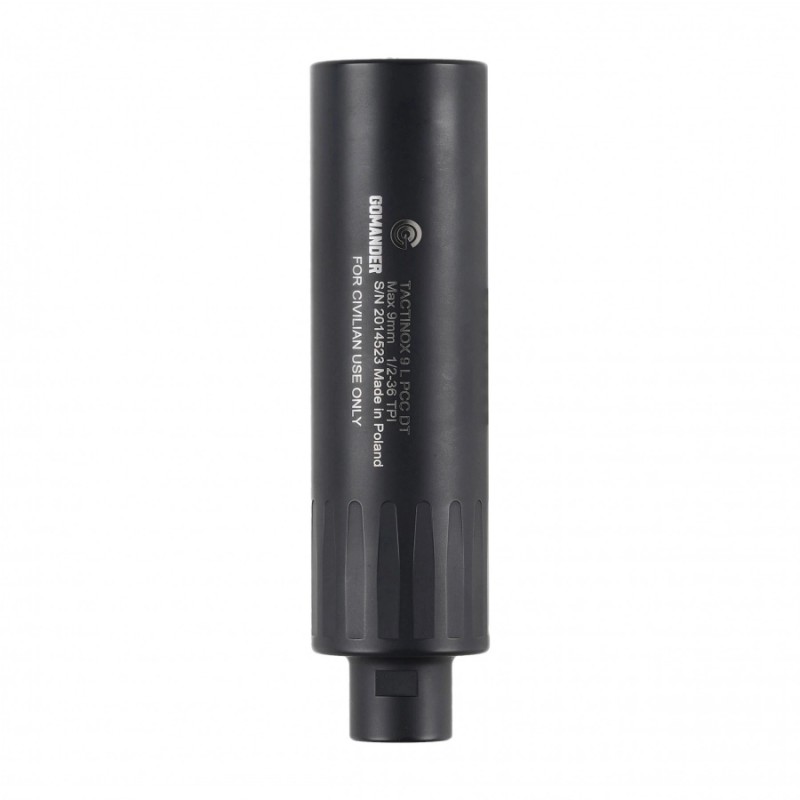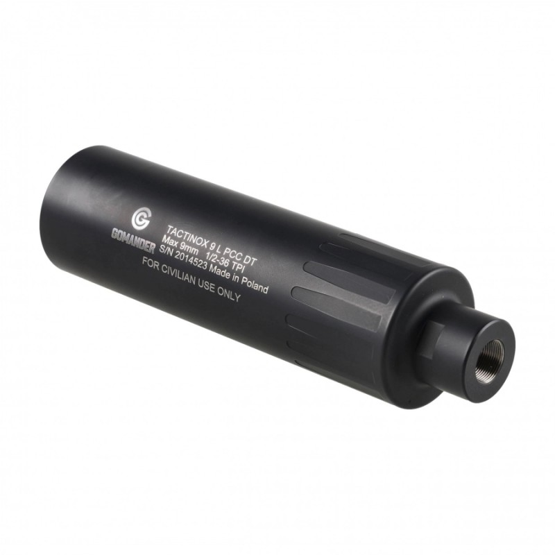 Moderator Gomander Tactinox 9 został stworzony do użytku z karabinkami PCC (pistol catridge carbine) specjalnie z myślą o intensywnym strzelaniu. Zastosowanie w konstrukcji stali nierdzewnej Monocore gwarantuje ekstremalną wytrzymałość, zarówno mechaniczną, jak i pod kątem odporności na działanie wysokich temperatur. Pokrycie powierzchni tłumika powłoką Cerakote gwarantuje nam dodatkowe zabezpieczenie przed kwaśnym środowiskiem tworzonym przez nagar i gazy prochowe. Konstrukcja tłumika sprawia również, że jest on przyjazny w użytkowaniu. Znacząco redukuje ilość powracających gazów prochowych oraz jest wyjątkowo łatwy w czyszczeniu. Przedstawiony model jest w kolorze czarnym.