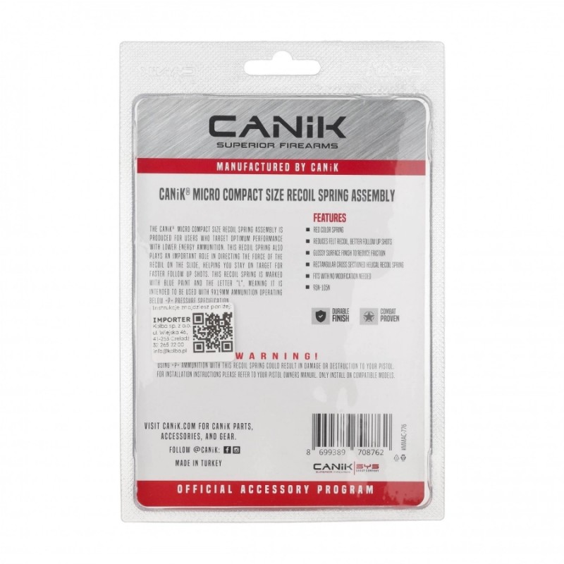 Fabryczna sprężyna została zaprojektowana specjalnie dla modeli Canik MICRO COMPACT – to oznacza maksymalną zgodność z konstrukcją broni i zachowanie pełnej funkcjonalności zgodnej z zamysłem producenta. Bez kombinacji, bez modyfikacji – po prostu działa. Dzięki temu masz pewność, że każdy cykl zamka będzie płynny, a siła oporu odpowiednio dobrana do parametrów fabrycznych Twojego pistoletu.