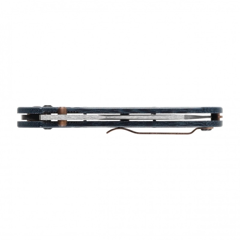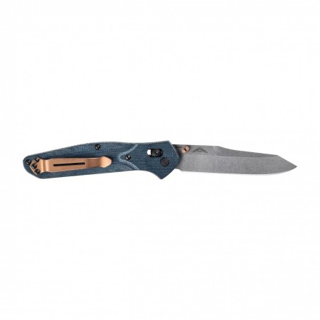Folder Benchmade Osborne ma okładziny rękojeści wykonane z granatowej Denim Mircarty – kompozytu powstałego z połączenia prasowanego pod ciśnieniem płótna z syntetyczną żywicą. Chropowata faktura i gładkie krawędzie okładzin sprawiają, że nóż dobrze leży w dłoni. Materiał ten jest odporny na wilgoć, zużycie i zmienne warunki pogodowe, a jednocześnie z biegiem lat nabiera indywidualnego charakteru, jak Twoje ulubione jeansy.