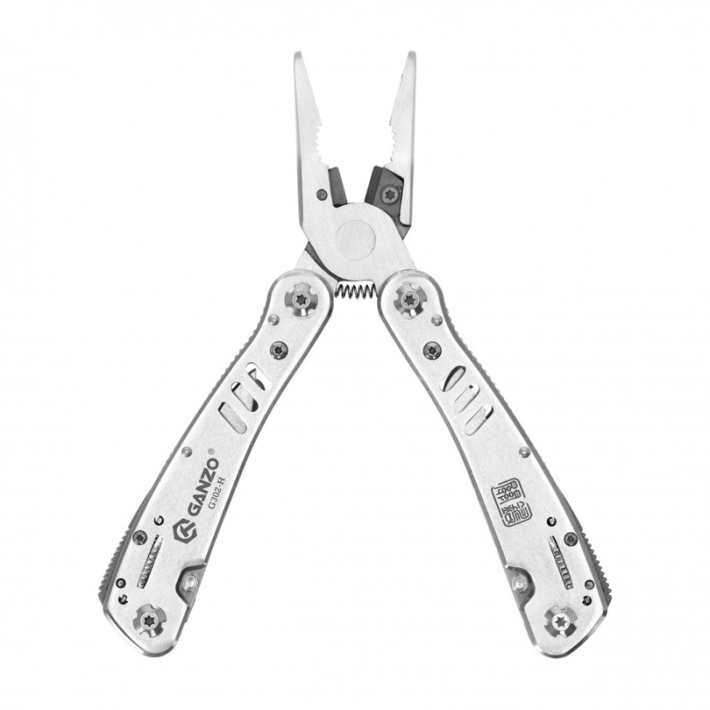 Multitool ma ciężki i masywny szkielet (ramiona) ze stali oraz narzędzia ze stali nierdzewnej 440C, którą dodatkowo pokryto chromowaną powłoką antykorozyjną. Na pokładzie multitoola Ganzo G302-H zaimplementowano łącznie 27 przydatnych narzędzi, tworząc w ten sposób praktyczny niezbędnik, który pozwala na przeprowadzenie wielu drobnych napraw. Dzięki rozmieszczeniu kluczowych narzędzi na zewnętrznych stronach rękojeści dostęp do piły, ostrza gładkiego i ząbkowanego jest ułatwiony i nie wymaga rozkładania multitoola. Dodatkowo wspomniane narzędzia (piłę i 2 ostrza) można w szybki i wygodny sposób rozłożyć jedną ręką za pomocą kołka.