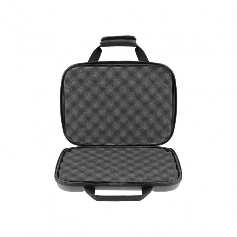 Pokrowiec na pistolet Umarex Molded Pistol Case to solidnie wykonana walizka przeznaczona do przenoszenia broni krótkiej, wiatrówki lub repliki airsoft. Pokrowiec wykonano z miękkiej i przyjemnej w dotyku pianki EVA. Wnętrze wypełnia dodatkowo sprężysta wyściółka z pianki w kształcie stożków (karbowań), która zapobiega przemieszczaniu się zawartości podczas przenoszenia. W pokrowcu możesz również przenosić niewielki notebook lub tablet o maksymalnej przekątnej ekranu 14 cali.