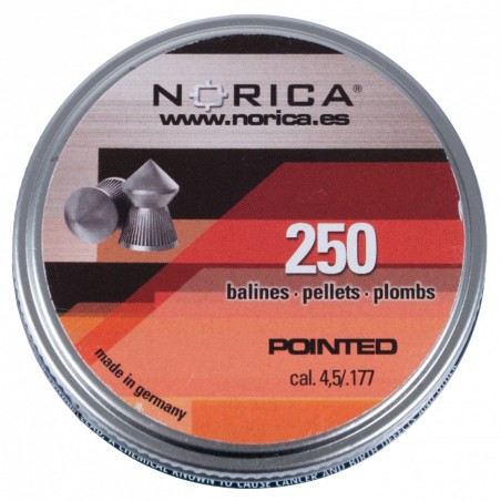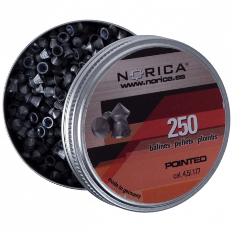Norica Pointed 4,5 mm 250 szt. to śrut ołowiany ze szpiczastą główką przeznaczony do strzelania rekreacyjnego z pistoletów i karabinków pneumatycznych na CO2.