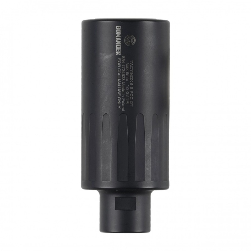 Tłumik Gomander Tactinox 9 został stworzony do użytku z karabinkami PCC z myślą o prowadzeniu intensywnego ognia. Zastosowanie w konstrukcji stali nierdzewnej Monocore gwarantuje ekstremalną wytrzymałość, zarówno mechaniczną jak i pod kątem odporności na działanie wysokich temperatur. Pokrycie powierzchni tłumika ceramiczną powłoką Cerakote gwarantuje nam dodatkowe zabezpieczenie przed kwaśnym środowiskiem tworzonym przez pozostałości prochu. Konstrukcja tłumika sprawia również, że jest on niezwykle przyjazny w użytkowaniu - znacząco redukuje ilość powracających gazów prochowych jak i jest wyjątkowo łatwy w czyszczeniu.