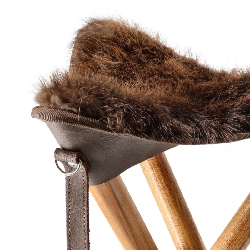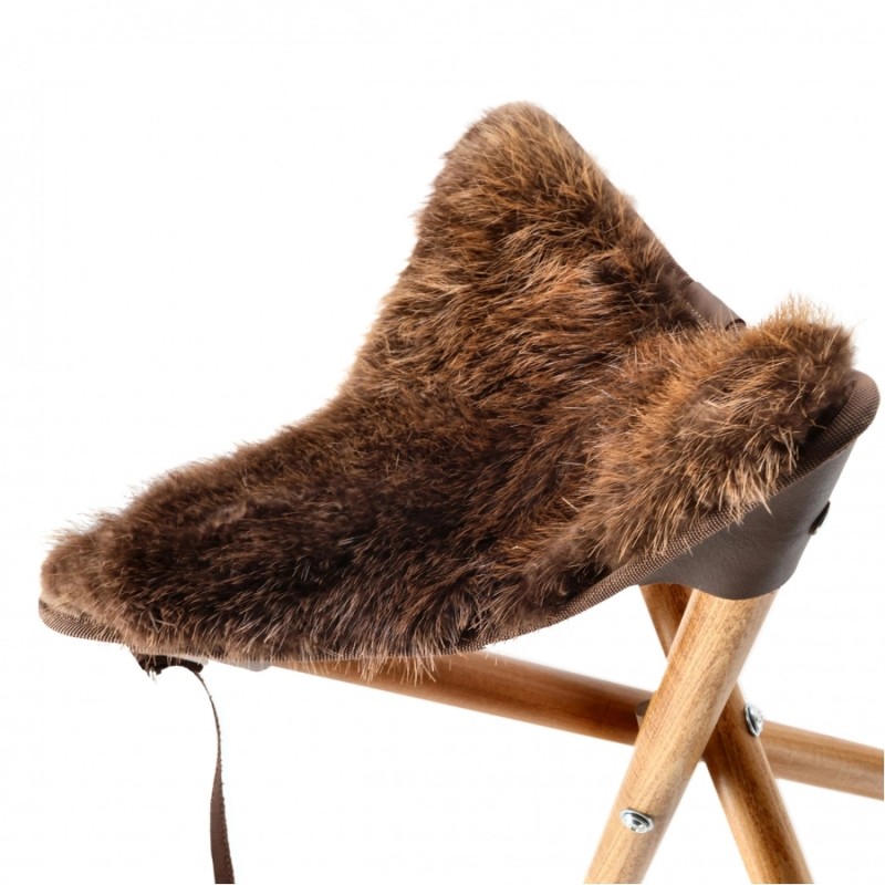 Siedzisko wykonane z prawdziwego futra bobra jest wodoodporne i odporne na intensywne użytkowanie. Trójnożna konstrukcja z solidnego drewna bukowego zapewnia stabilność nawet w trudnych warunkach terenowych. Całość spinają eleganckie skórzane paski, które dodają całości ekskluzywnego wyglądu i ułatwiają transport. Ten stołek myśliwski nie ma sobie równych – zarówno pod względem estetyki, jak i funkcjonalności. To sprzęt, który zostanie z Tobą na lata.