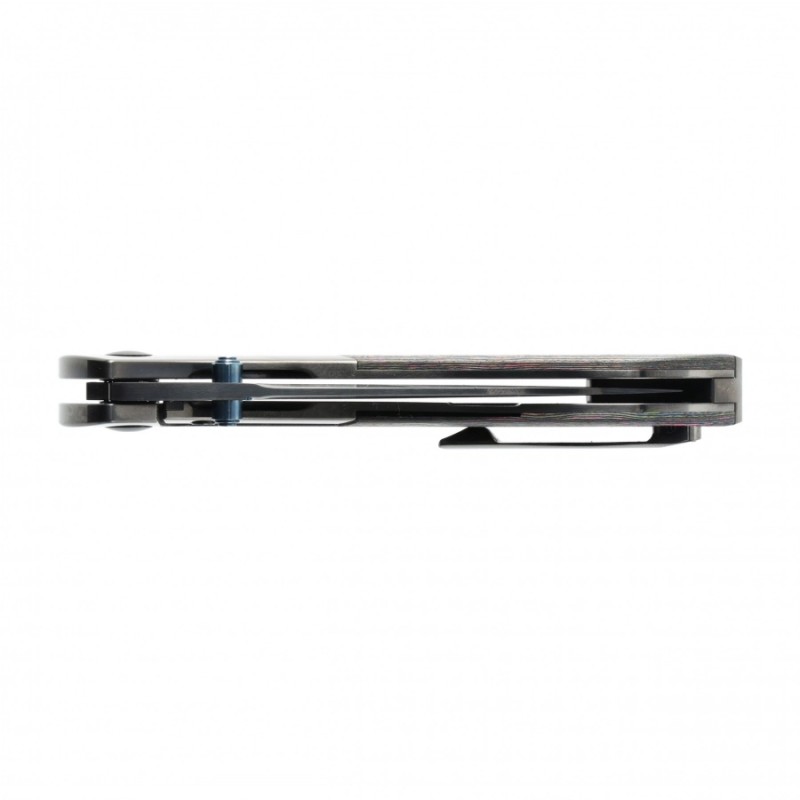 Kizer Spitfire Ki3690A1 to wyjątkowy folder EDC, zaprojektowany przez Chrisa Conawaya na wzór legendarnego myśliwca Spitfire. Smukłe linie, opływowy kształt i dynamiczny charakter noża nawiązują do lotniczych tradycji, łącząc minimalistyczną elegancję z funkcjonalnością premium. Wersja A2 zachwyca czarną tytanową rękojeścią oraz wyjątkowymi okładzinami z karbonu w stylu „80s Camo”, przyciągając wzrok i podkreślając nowoczesny charakter noża.