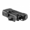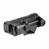 Korpus wykonany z wytrzymałego aluminium 7075-T6 odporny jest na wstrząsy i wilgoć, spełniając normę IPX8. To oznacza, że urządzenie działa nawet w ekstremalnych warunkach pogodowych. Wyraźnie teksturowany przycisk pokryty gumą zapewnia komfortową i intuicyjną obsługę, a dodatkowy żelowy przełącznik pozwala na umieszczenie sterowania w najbardziej dogodnym miejscu. Dzięki temu użytkownik może w pełni skoncentrować się na celu i sytuacji w terenie.