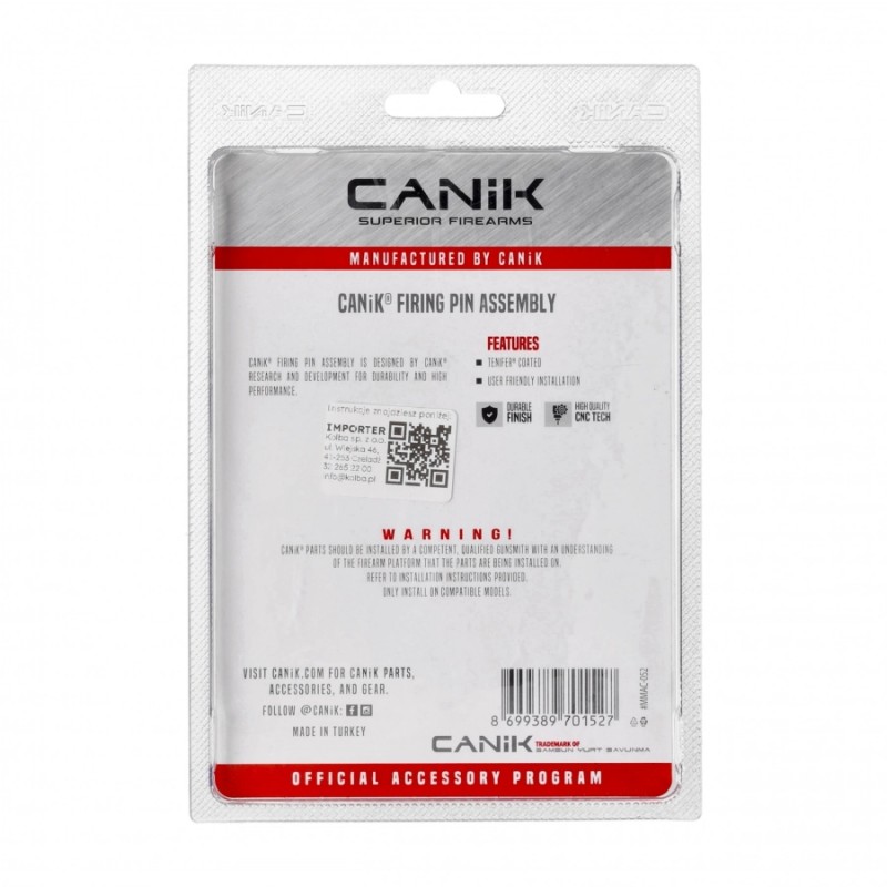 Zespół iglicy Canik TP9, TP9 Elite Combat, SFx, Rival i SF Elite MMAC-052 to kluczowy element zapewniający niezawodne i powtarzalne działanie pistoletu. Odpowiednia konstrukcja i precyzyjne wykonanie gwarantują szybką reakcję spustu, co przekłada się na płynność działania broni oraz precyzję strzałów. Dzięki optymalnej geometrii i trwałym materiałom iglica pracuje bez opóźnień i zacięć, co jest szczególnie ważne w warunkach dynamicznego strzelania sportowego oraz taktycznego.