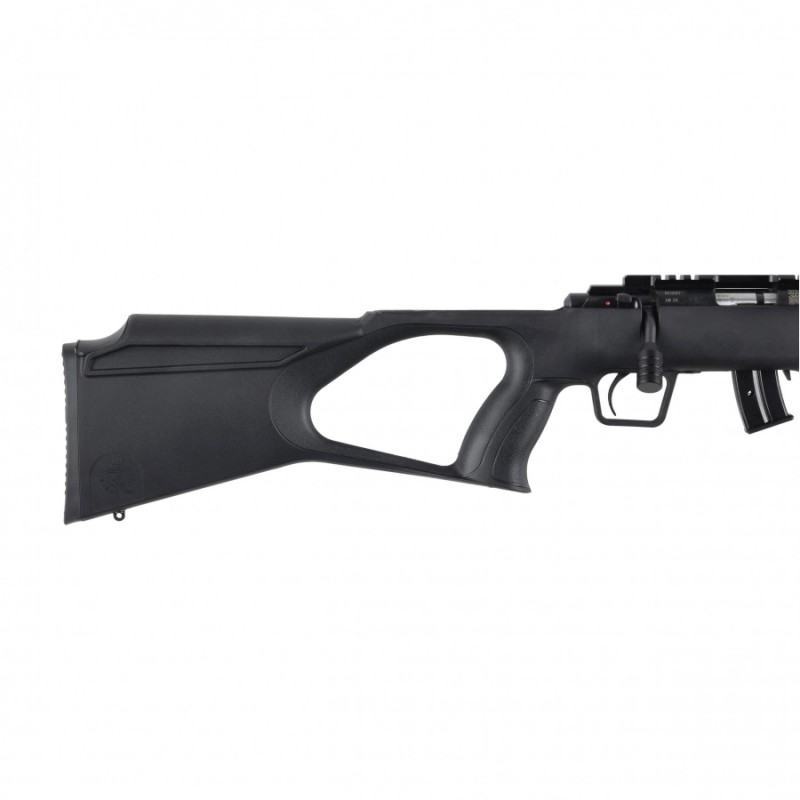 Dzięki długiej 508 mm lufie oraz ergonomicznej osadzie z otworem na kciuk (thumb-hole), karabinek zapewnia celne i komfortowe strzelanie w różnych postawach. Polimerowe łoże z teksturowanymi powierzchniami oraz chwycie pistoletowym zapewnia solidne podparcie, a precyzyjny spust o dwustopniowym działaniu umożliwia oddawanie celnych strzałów.