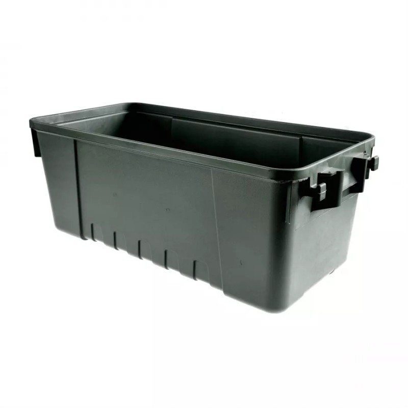 Wzmocniona klapa zamykana jest dwoma solidnymi klamrami zatrzaskowymi, a dodatkowe otwory umożliwiają zabezpieczenie zawartości kłódkami. Wnętrze skrzyni jest otwarte, co pozwala na dowolne układanie i organizowanie przenoszonych przedmiotów. Konstrukcja zewnętrzna umożliwia stabilne układanie skrzyń w stosy, a umieszczone po bokach punkty mocowania ułatwiają zabezpieczenie całości podczas transportu.