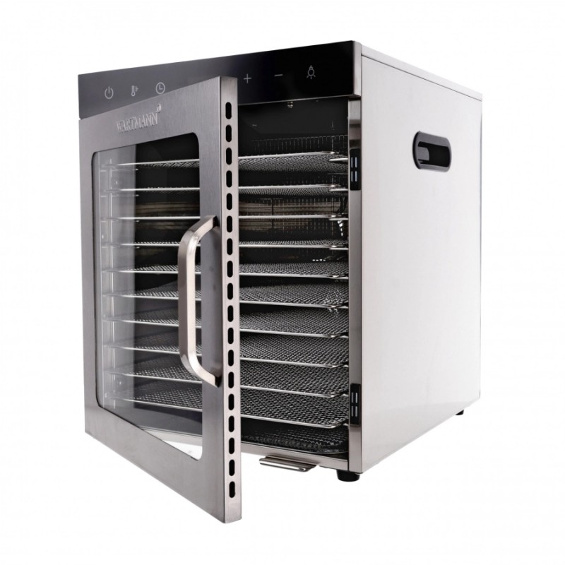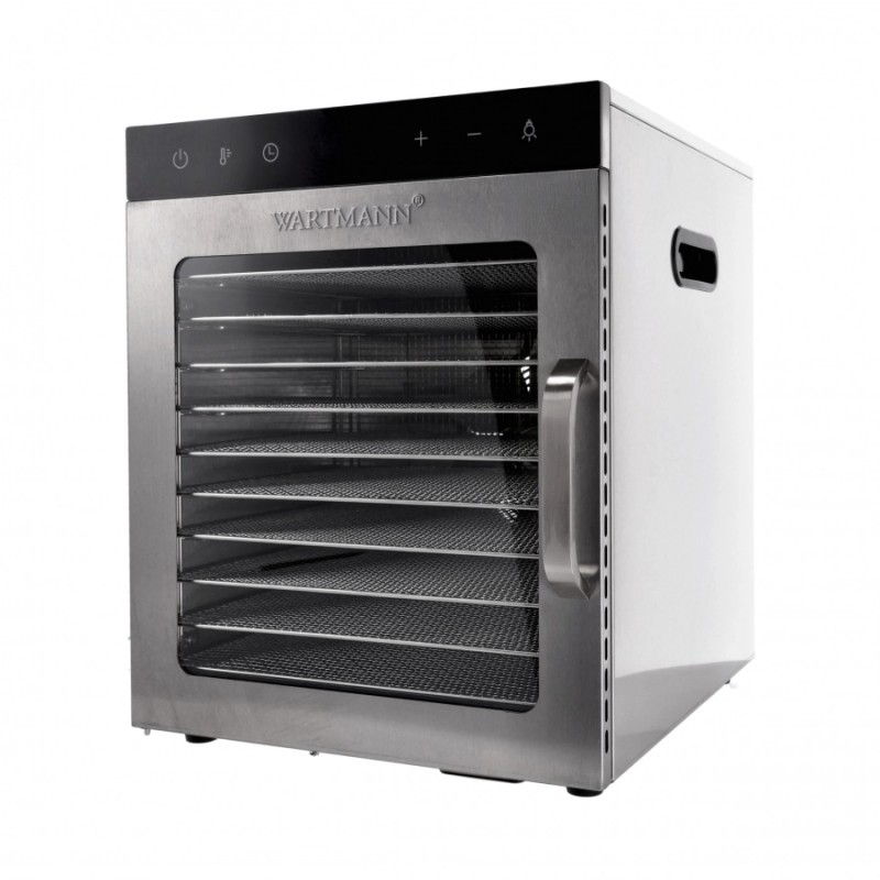 Wartmann WM-2110 DH został wyprodukowany w Holandii, z dbałością o najwyższe standardy jakości. Stal nierdzewna i bezpieczne materiały zapewniają trwałość oraz higienę, dzięki czemu urządzenie posłuży Ci przez lata. Wbudowane oświetlenie LED daje pełną kontrolę nad procesem suszenia, a możliwość suszenia różnych produktów równocześnie sprawia, że to niezastąpione urządzenie dla każdego, kto ceni zdrowy styl życia i wygodę.