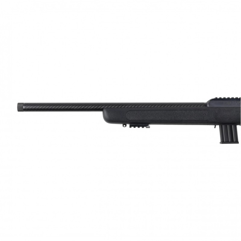 Diana R-22 cal. .22 LR carbon to karabinek sportowy do strzelania precyzyjnego, w którym zastosowano ekonomiczne łoże, kutą lufę z karbonowym wykończeniem, regulowany mechanizm spustowy oraz dwie szyny akcesoryjne do montażu optyki i dwójnogu