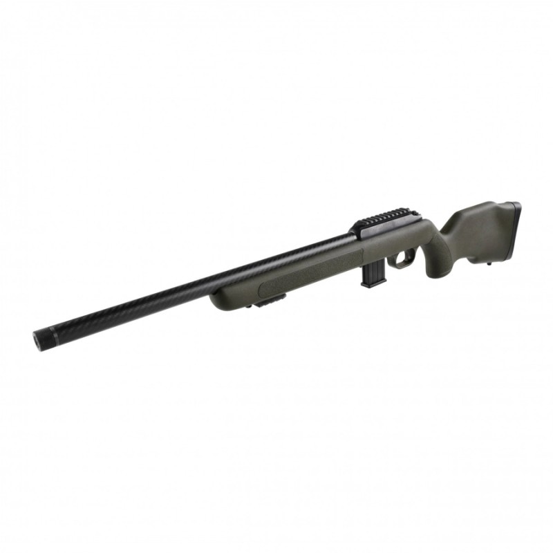 Diana R-22 cal. .22lr carbon to karabinek sportowy do strzelania precyzyjnego, w którym zastosowano ekonomiczne łoże, kutą lufę z karbonowym wykończeniem, regulowany mechanizm spustowy oraz dwie szyny akcesoryjne do montażu optyki i dwójnogu
