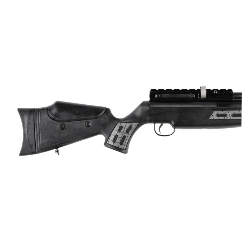 Wysoką celność wiatrówka zawdzięcza m.in. zastosowaniu dwustopniowego spustu Quattro Trigger z regulacją w 3 zakresach. Użytkownik może samodzielnie zdefiniować długość drogi wstępnej oraz ciężar spustu, dlatego już po krótkim treningu strzeleckim możemy uzyskać ciasne i satysfakcjonujące skupienie na tarczy. Karabinek ma 2 mechanizmy odpowiedzialne za bezpieczeństwo użytkowania: Anti-Knock System-mechanizm zapobiegający niekontrolowanemu wystrzałowi w razie upadku lub dużego wstrząsu karabinka oraz bezpiecznik manualny umieszczony nad spustem.