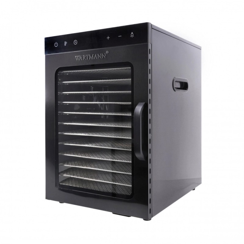 Dehydrator stalowy Wartmann WM-2512 DH w eleganckim, czarnym wykończeniu to idealne rozwiązanie dla osób ceniących zdrową, naturalną żywność. Dzięki aż 12 stalowym tackom o łącznej powierzchni suszenia 1,02 m² możesz przygotować jednocześnie duże ilości owoców, warzyw, grzybów czy ziół. To także doskonałe narzędzie do przygotowania domowych przysmaków, takich jak pełna aromatu suszona wołowina – przekąska, która łączy w sobie wyśmienity smak i wysoką wartość odżywczą.