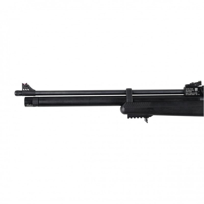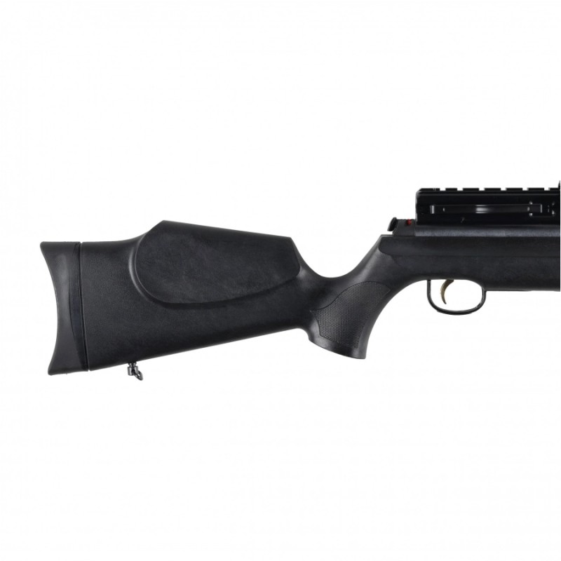 Kolbę można dostosować do budowy i preferencji strzelca dzięki zastosowaniu stopki o regulowanej wysokości. Dzięki takiej funkcjonalności strzelec może dostosować pozycję stopki w zależności budowy ciała, preferencji oraz wysokości montażu optyki. W karabinku zastosowaną precyzyjnie bruzdowaną lufę o długości aż 585 mm zakończoną czokiem (zwężeniem), który w przypadku długiej lufy zapewnia lepsze prowadzenie i uszczelnienie śrutu w przewodzie lufy. Pływająca lufa zakończona jest gwintem 1/2” UNF umożliwiającym montaż urządzenia wylotowego np. moderatora dźwięku. W zestawie otrzymujemy regulowane przyrządy celownicze ze światłowodami, które w razie potrzeby można zdemontować z wiatrówki.