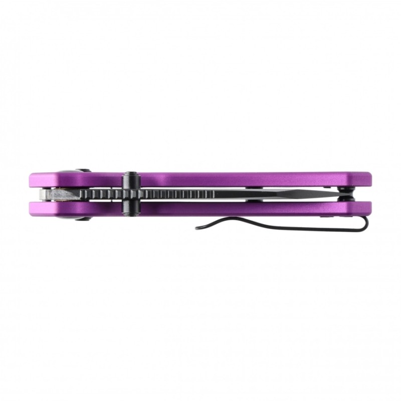 Rękojeść o długości 93 mm została wykonana z wysokiej jakości aluminium, co zapewnia niską masę (76 g) oraz dużą odporność na uszkodzenia mechaniczne. Ergonomiczny kształt, subtelna faktura oraz intensywnie fioletowy kolor sprawiają, że nóż prezentuje się nowocześnie i świetnie leży w dłoni. Model wyposażono w głęboki, odwracalny klips Deep Carry, który umożliwia wygodne i dyskretne przenoszenie noża zarówno w kieszeni, jak i na pasku.