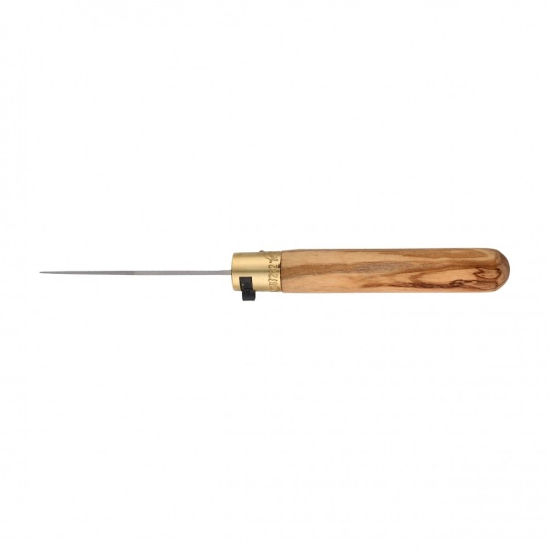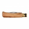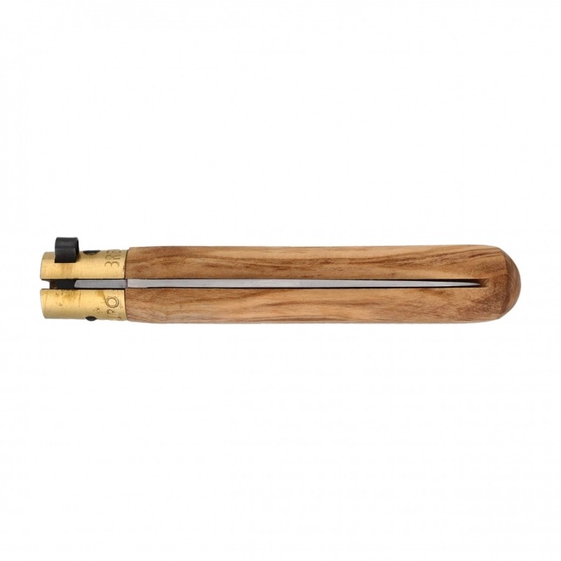 Rękojeść została wykonana z jednego kawałka włoskiego drewna oliwnego, znanego z pięknej, ciepłej barwy i naturalnego usłojenia. Ergonomiczny kształt sprawia, że nóż skłądany doskonale leży w dłoni i nie powoduje zmęczenia nawet podczas dłuższego użytkowania. To połączenie praktycznej wygody z eleganckim wyglądem, które czyni nóż Old Bear nie tylko narzędziem, ale i estetycznym dodatkiem dla pasjonatów życia w zgodzie z naturą.