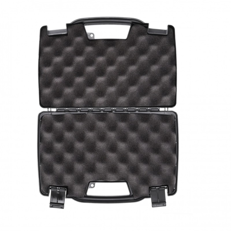 Walizka na pistolet została wyposażona w dwa solidne zatrzaski, a dodatkowy otwór umożliwia przełożenie i zamknięcie futerału za pomocą kłódki, która uniemożliwi na dostęp do zawartości osobom nieupoważnionym.