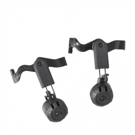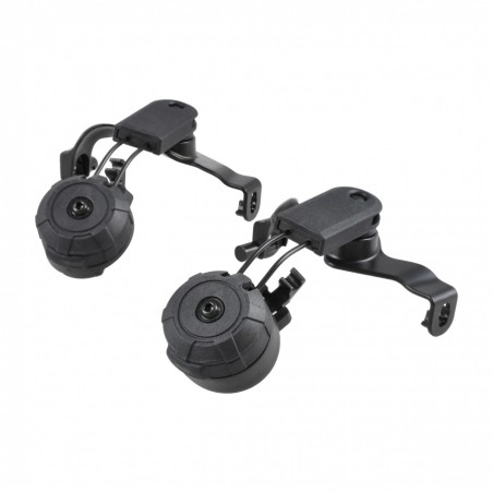 Adaptery zostały zaprojektowane tak, aby umożliwiały pełną rotację ochronników względem hełmu. Oznacza to, że użytkownik może łatwo odchylić słuchawki w razie potrzeby, bez konieczności ich zdejmowania. Dzięki temu dostęp do dodatkowych akcesoriów – takich jak noktowizja czy latarki montowane na hełmie – jest szybki i wygodny. To praktyczne rozwiązanie, które zwiększa efektywność działania w dynamicznych sytuacjach taktycznych.