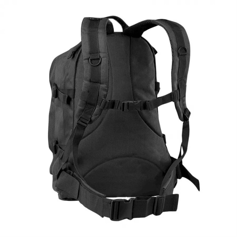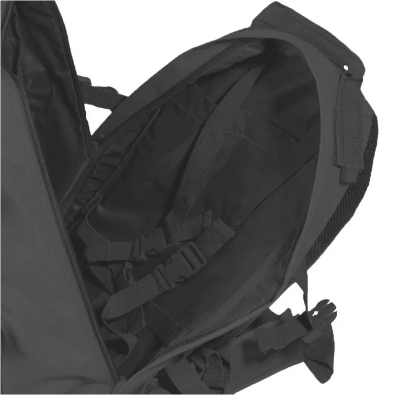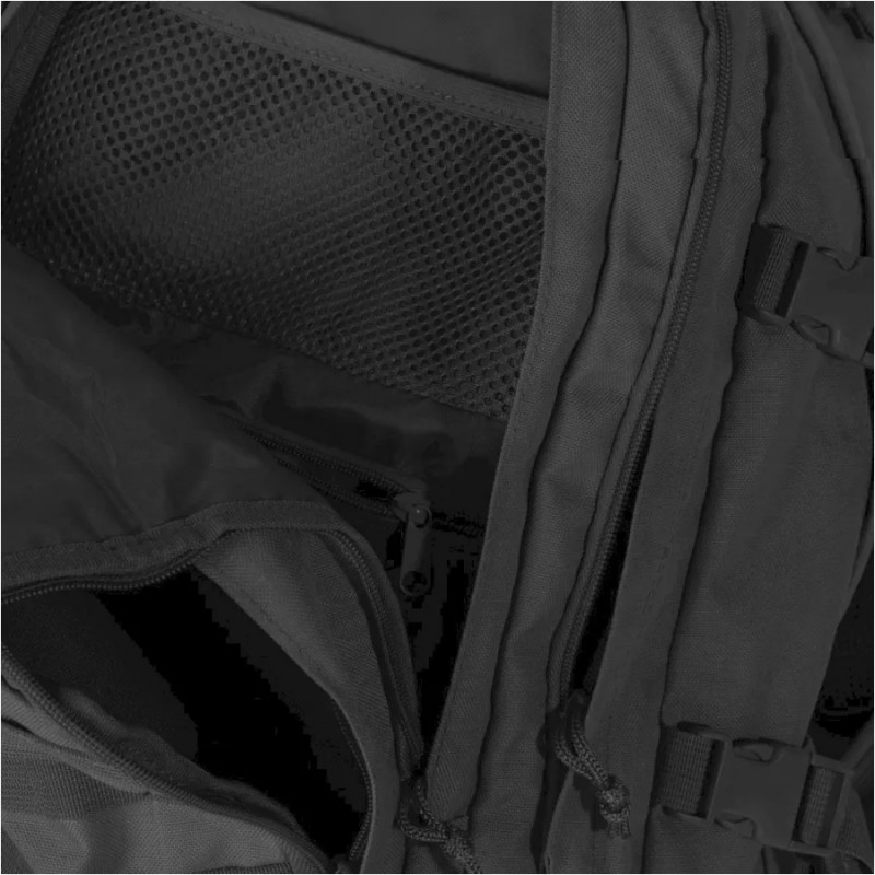 Przednia kieszeń wyposażona została w system MOLLE, do którego bez problemu możemy doczepić dodatkową kieszeń, panel velcro czy pokrowiec z termosem. W przypadku, gdy zabraliśmy ze sobą bukłak, dwa otwory zamykane rzepem przeznaczone są do przekierowania rurek od pojemnika z napojem. Dla bezpieczeństwa plecak został zaopatrzenia w regulowane boczne taśmy mocującegco, wytrzymałe szelki oraz pas biodrowy.