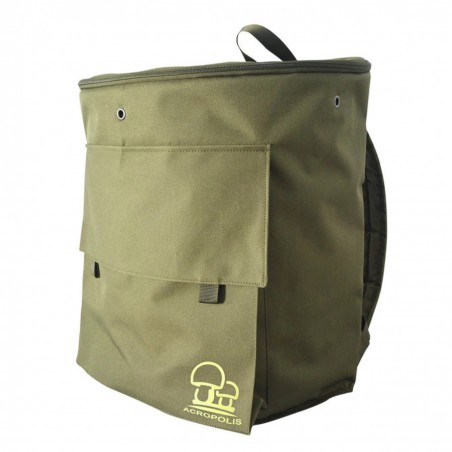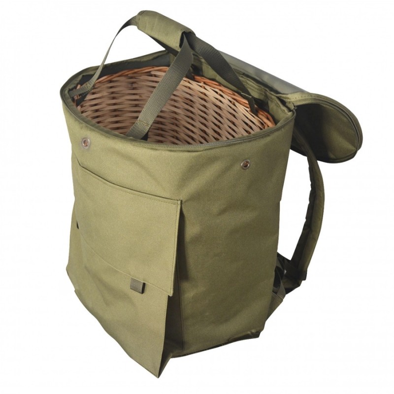 Plecak wiklinowy ACROPOLIS RNG-2 30 litrów to wygodny kosz transportowy, służący do przenoszenia zbioru grzybów podczas grzybobrania. Ma on pojemność 30 litrów i wykonany został w tradycyjnej metodzie ze splotu wikliny połączonej z miękką pianką poliestrową zapobiegającą uciskowi na plecy. Od zewnątrz wyposażony jest w pokrowiec, otulający kosz. Dodatkowo wyposażono go w regulowane na długość szelki. Model jest w kolorze oliwkowym.