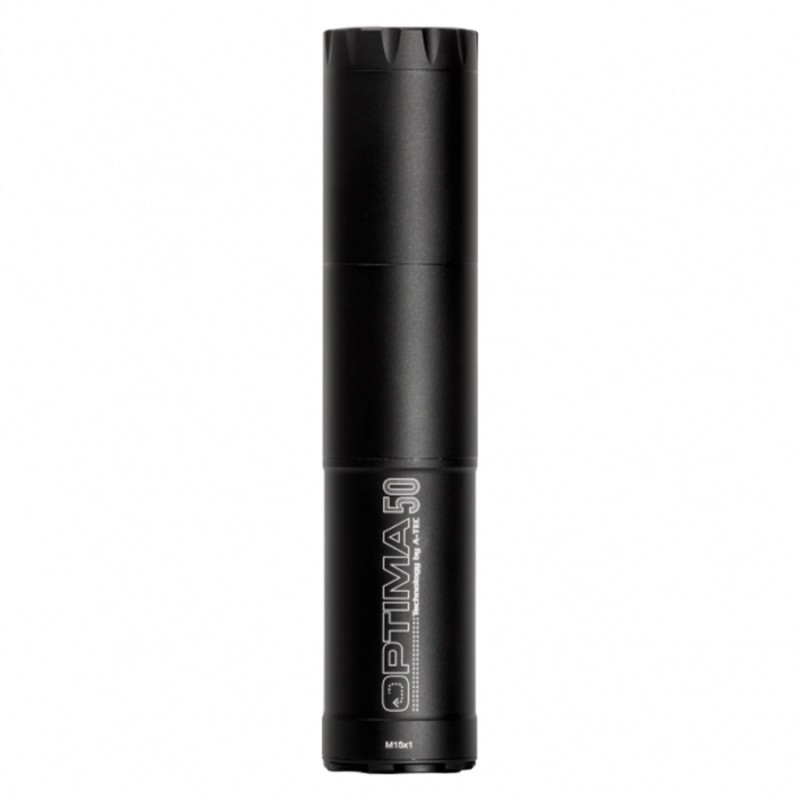 A-Tec Optima 50 ma hybrydową konstrukcję (stalowy wkład i aluminiowa obudowa), która eliminuje efekt pop występujący podczas pierwszego strzału z zimnej lufy. Tłumik Optima 50 uznawany jest za jeden z najskuteczniejszych i najtrwalszych tłumików, dlatego jest powszechnie stosowany przez myśliwych oraz strzelców sportowych.Tłumik jest rozbieralny i ma modułową budowę, dzięki czemu strzelec może dostosować jego długość w zależności od kalibru broni. W modułowej konstrukcji tłumika możemy wyróżnić podstawę z gwintem A-Lock (do nakręcania na lufę) oraz 3 rozkręcane aluminiowe bloki (komory). Dzięki takiej budowie możemy dokładnie wyczyścić wszystkie elementy tłumika. Przeznaczony do broni z adapterem A-LOCK MINI. Średnia wartość tłumienia wynosi 31 dB (dla .308 Win)