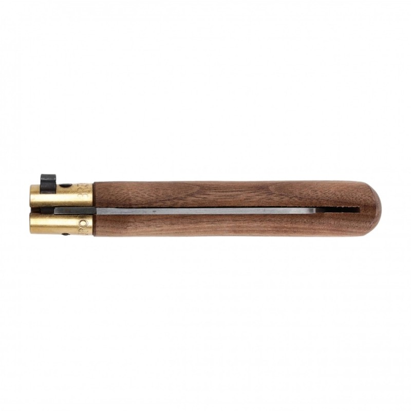 Nóż Biltong Walnut wyposażony został w opatentowany system blokady Viro Lock, oparty na metalowym pierścieniu umieszczonym w mosiężnym okuciu rękojeści. Rozwiązanie to gwarantuje bezpieczeństwo pracy – ostrze pozostaje stabilne zarówno w pozycji otwartej, jak i zamkniętej. Mechanizm działa płynnie i pozwala na obsługę noża jedną ręką, co czyni go niezwykle praktycznym w codziennych zadaniach oraz w terenie.
