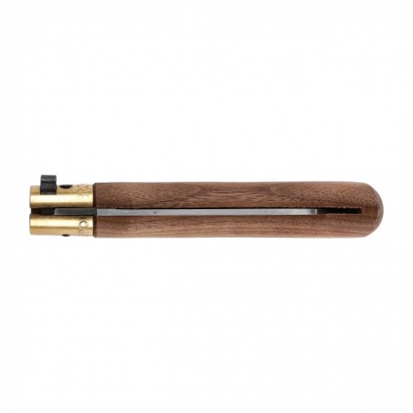 Okładziny rękojeści zostały wykonane z jednego kawałka olejowanego drewna orzechowego o głębokiej, brązowej barwie. Drewno to nie tylko zachwyca swoim naturalnym wyglądem, ale także zapewnia wyjątkowy komfort pracy. Ergonomiczny kształt uchwytu minimalizuje zmęczenie dłoni, nawet przy długotrwałym użytkowaniu. Olejowana powierzchnia dodatkowo chroni materiał przed wilgocią, zwiększając jego trwałość i nadając mu wyjątkowy charakter.