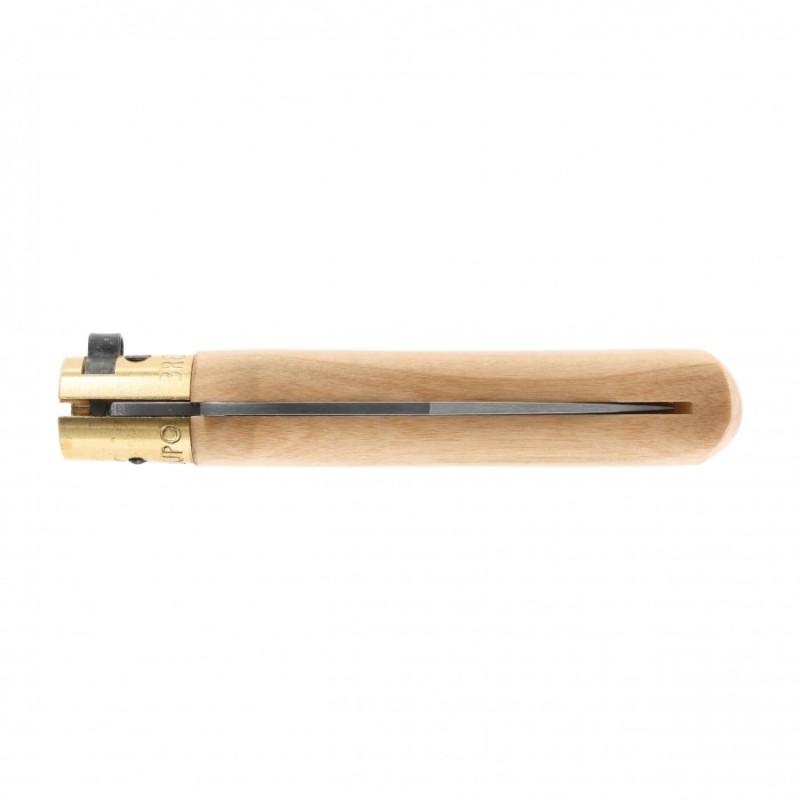 Rękojeść została wykonana z jednego kawałka włoskiego drewna oliwnego, znanego z pięknej, ciepłej barwy i naturalnego usłojenia. Ergonomiczny kształt sprawia, że nóż skłądany doskonale leży w dłoni i nie powoduje zmęczenia nawet podczas dłuższego użytkowania. To połączenie praktycznej wygody z eleganckim wyglądem, które czyni nóż Old Bear nie tylko narzędziem, ale i estetycznym dodatkiem dla pasjonatów życia w zgodzie z naturą.