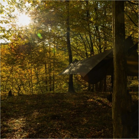 Dzięki przemyślanej konstrukcji Tarp Sola doskonale sprawdzi się w duecie z długim hamakiem. Jego sześciokątny kształt ułatwia naciąg i ogranicza gromadzenie się wody, co czyni go idealnym wyborem podczas nieprzewidywalnej pogody. Z łatwością rozłożysz go w lesie, na szlaku czy podczas biwaku – nawet jeśli nie masz wielkiego doświadczenia z tarpami.