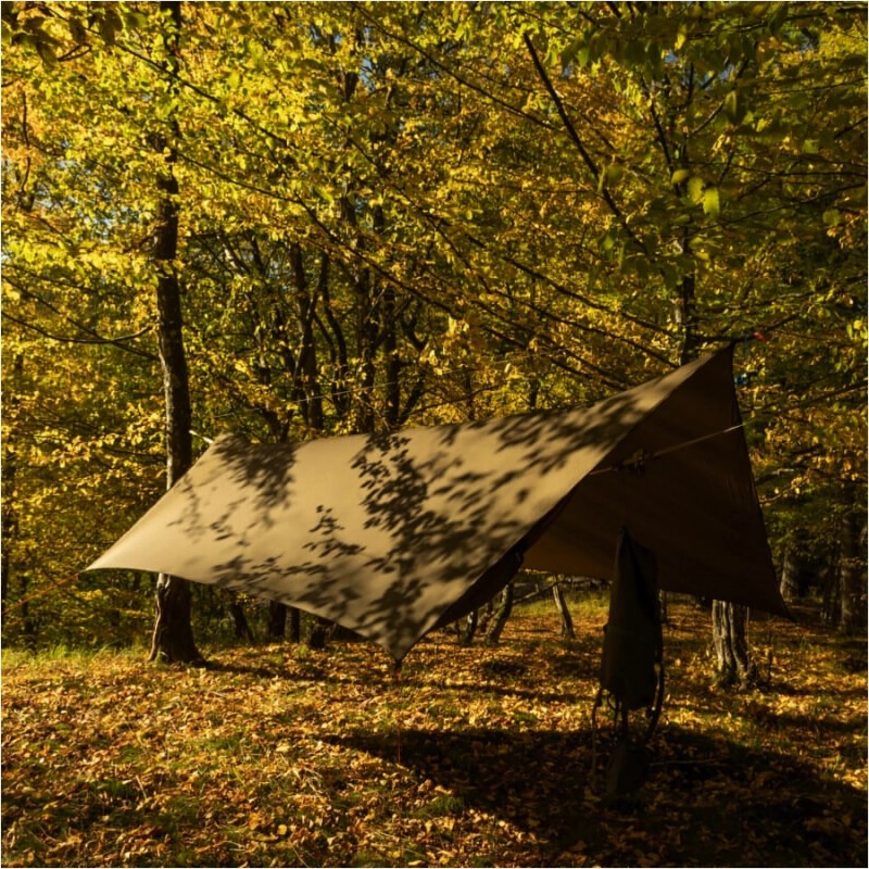 Tarp waży zaledwie 435 gramów, mieści się w poręcznym woreczku o wymiarach 18 × 12 cm i bez problemu zmieści się w każdym plecaku. Pomimo niewielkich rozmiarów po złożeniu, po rozłożeniu oferuje imponującą przestrzeń: 400 × 300 cm. Wodoodporność na poziomie 3000 mm oraz materiał nylonowy w splocie mikro RipStop gwarantują trwałość i odporność w każdych warunkach – od nagłej burzy po długie noce pod chmurką.