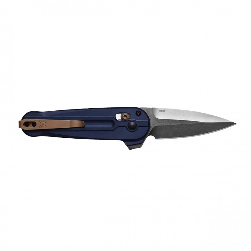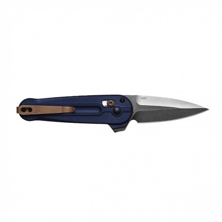 Rękojeść wykonana z anodowanego aluminium lotniczego 6061-T6 wyróżnia się atrakcyjnym kolorem Crater Blue oraz precyzyjnym frezowaniem. Lekka konstrukcja (zaledwie 85 g) idealnie wypełnia dłoń, zapewniając pewny i wygodny chwyt. Dodatkowym atutem jest klips Deep Carry w kolorze FDE, który pozwala dyskretnie nosić nóż w kieszeni, nie rezygnując z szybkiego dostępu.
