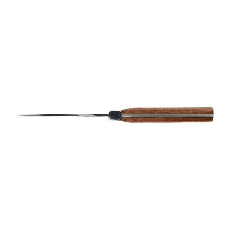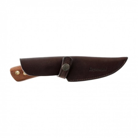 Rękojeść wykonana z afrykańskiego drewna Sapeli nadaje nożowi wyjątkowego charakteru. Głęboki, brązowy odcień i subtelny połysk po ręcznym polerowaniu sprawiają, że nóż prezentuje się szlachetnie i stylowo. Jednocześnie ergonomiczny kształt rękojeści zapewnia pewny i komfortowy chwyt, nawet podczas dłuższego użytkowania.